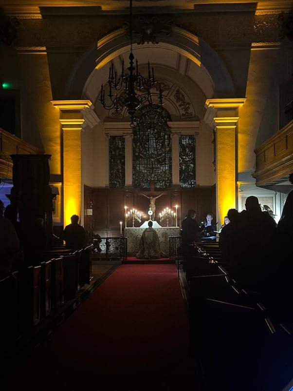 Launched in September 2025, Holy Hour is a fresh expression of worship rooted in the Church’s ancient traditions. It is open, accessible, and gently structured, people come and go throughout the hour, some staying briefly, others lingering. At its heart is a simple attempt to interrupt the rhythm of the Borough High Street commute with beauty, truth, and goodness, inviting those who pass our doors into an encounter with God, not through explanation or argument, but through attention, through space that gives more than people expect.